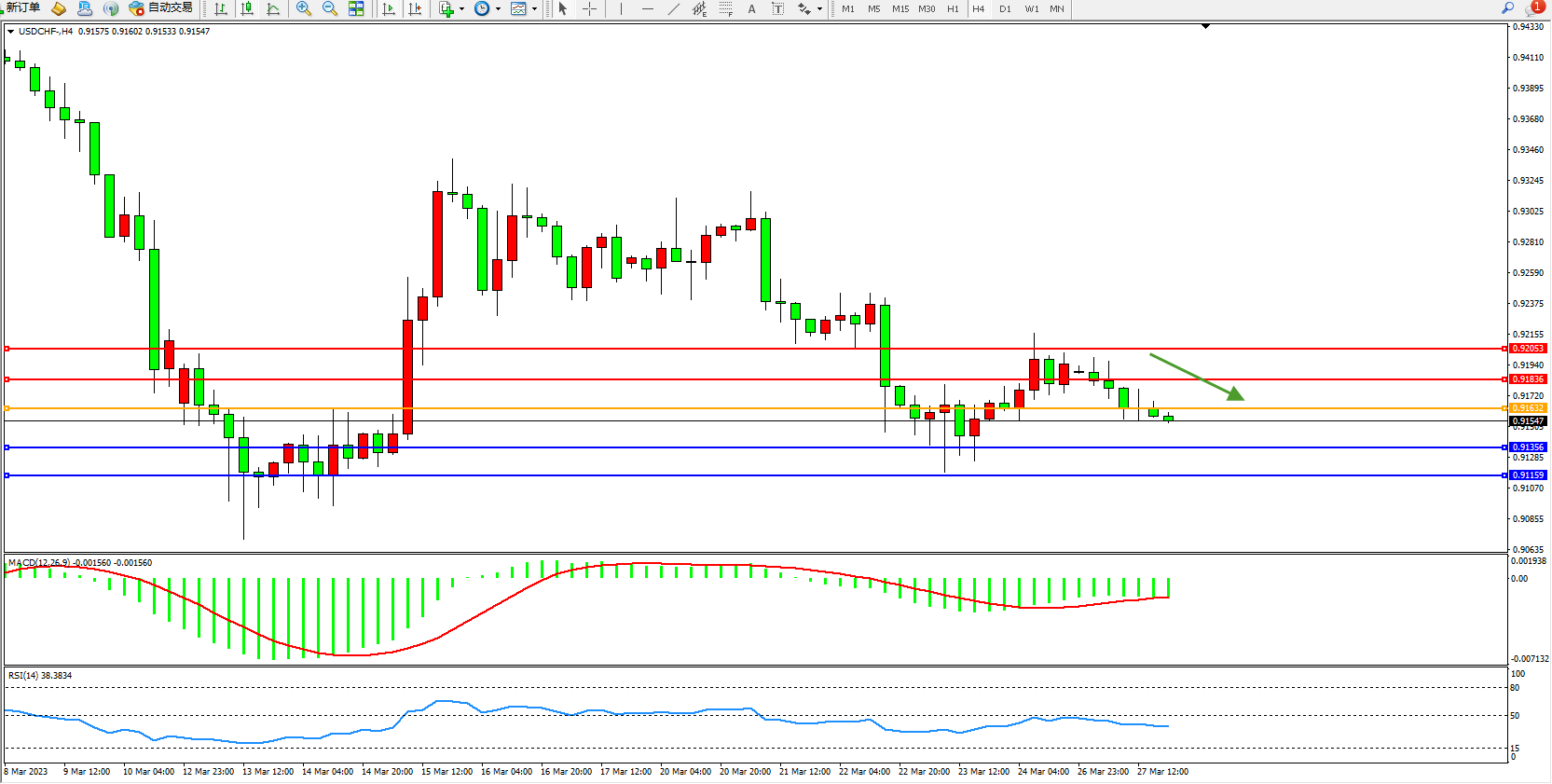 USDCHF:弱势下移 USDCHF  XAUUSD