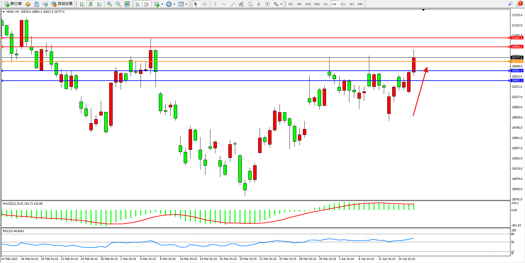 香港恒生指数4月17日(周一)收盘上涨343.64点,涨幅1.68%,报20782.45点;港股低开高走,三大指数午后快速拉升上涨,恒生科技指数一度涨近3%,收涨2.16%,恒指、国指分别涨1.68%和2.05%。大型科技股午后拉升助力大市走俏,美团涨约5%,小米涨3.6%,腾讯、网易、阿里巴巴皆上涨;中资券商股走强,中字头股普遍走高,大型基建股方向领涨;南下资金全日大幅净流入90.23亿港元,大市成交额为1365亿港元。