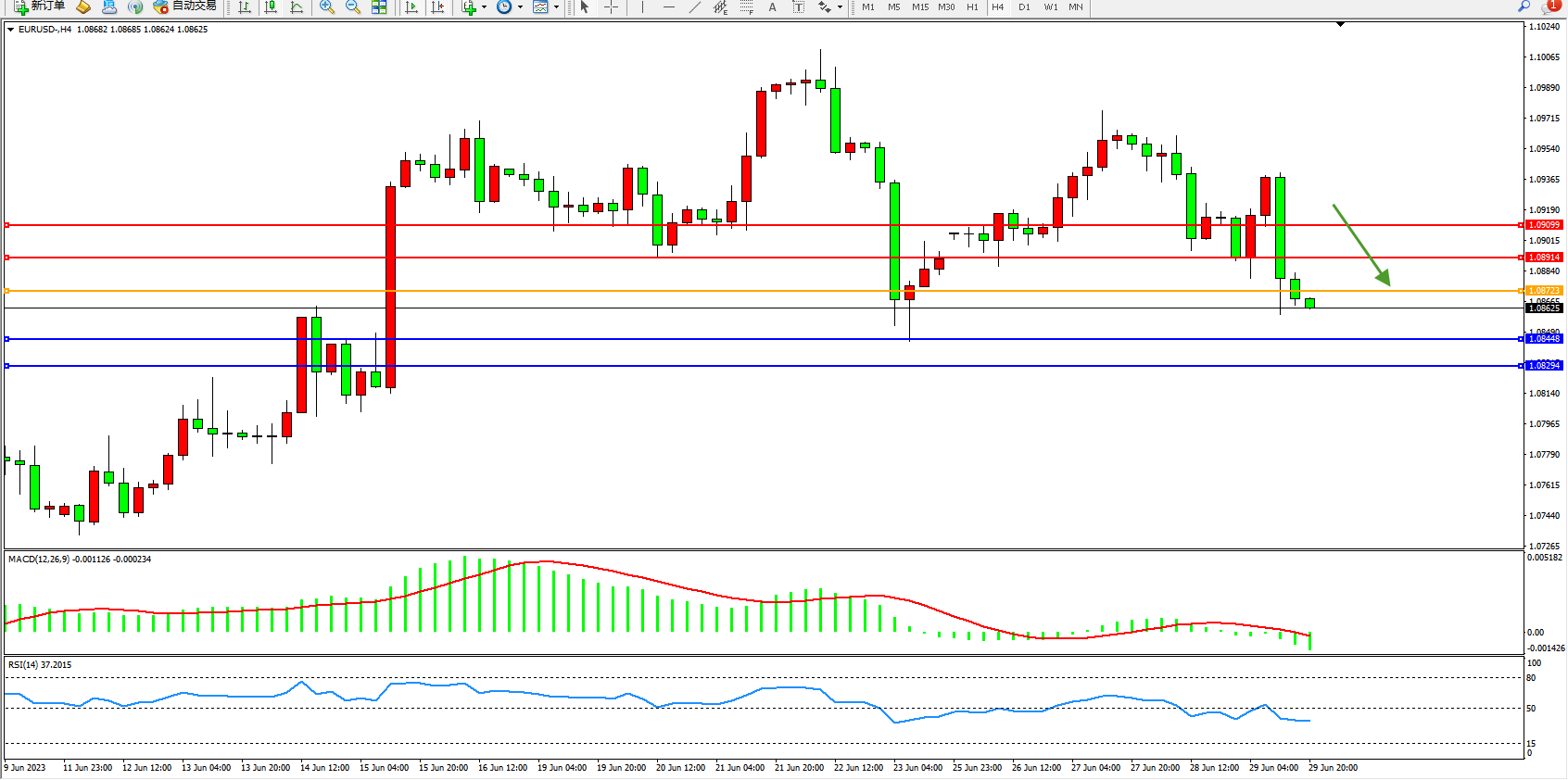 交易策略:1.08723下方看跌,目标1.08448 1.08294