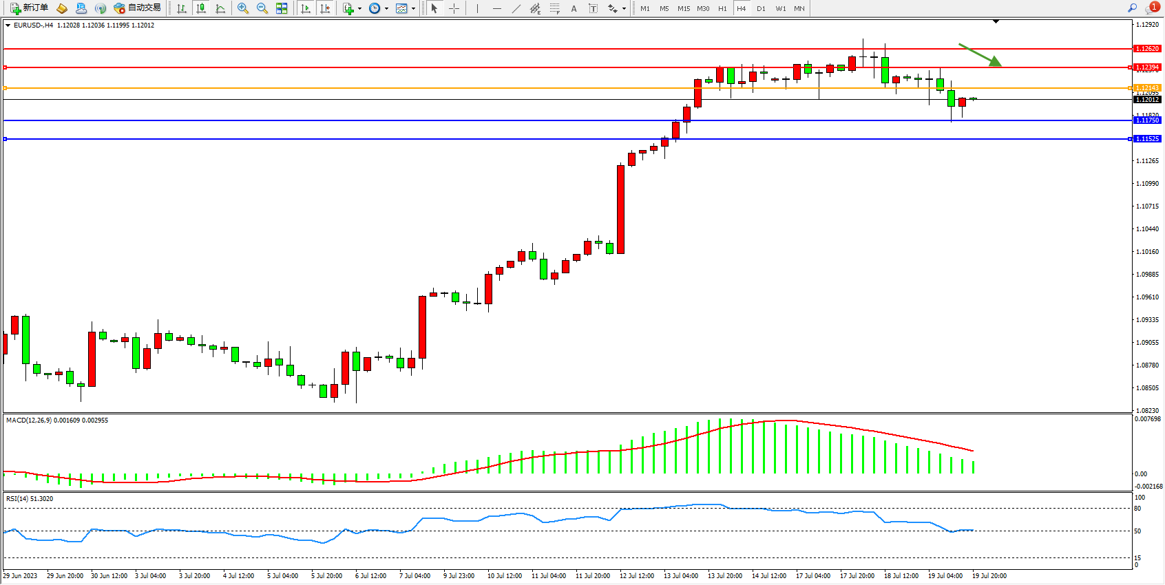 备选策略:1.12143上方看涨,目标1.12394  1.12620