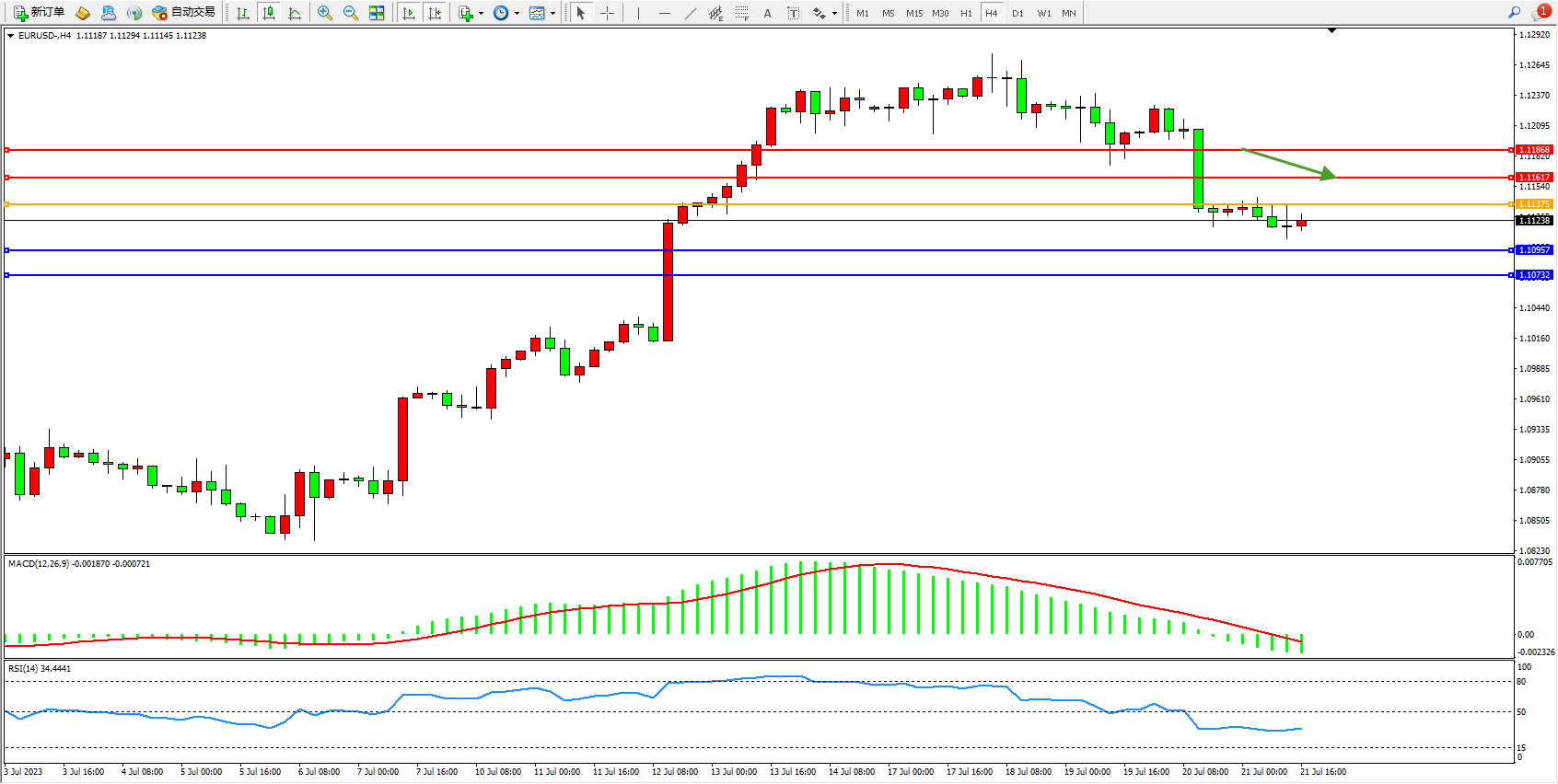 交易策略:1.11375下方看跌,目标1.10957  1.10732