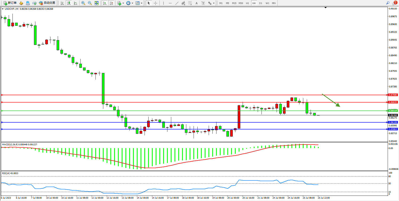 交易策略:0.86519下方看跌,目标0.86108  0.85864