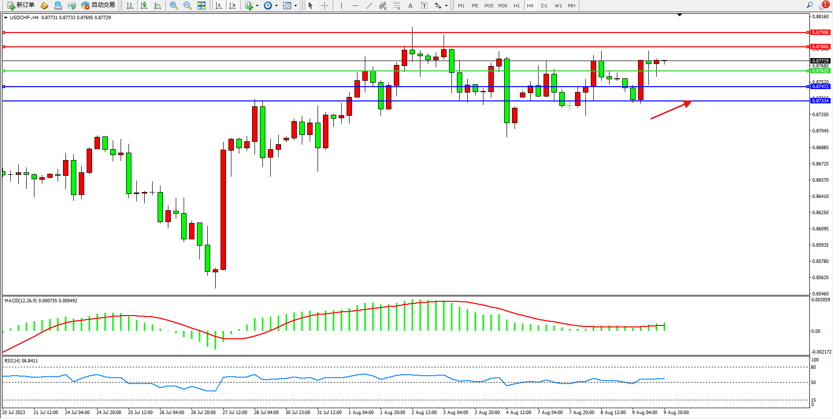 交易策略:0.87625上方看涨,目标0.87860  0.87998