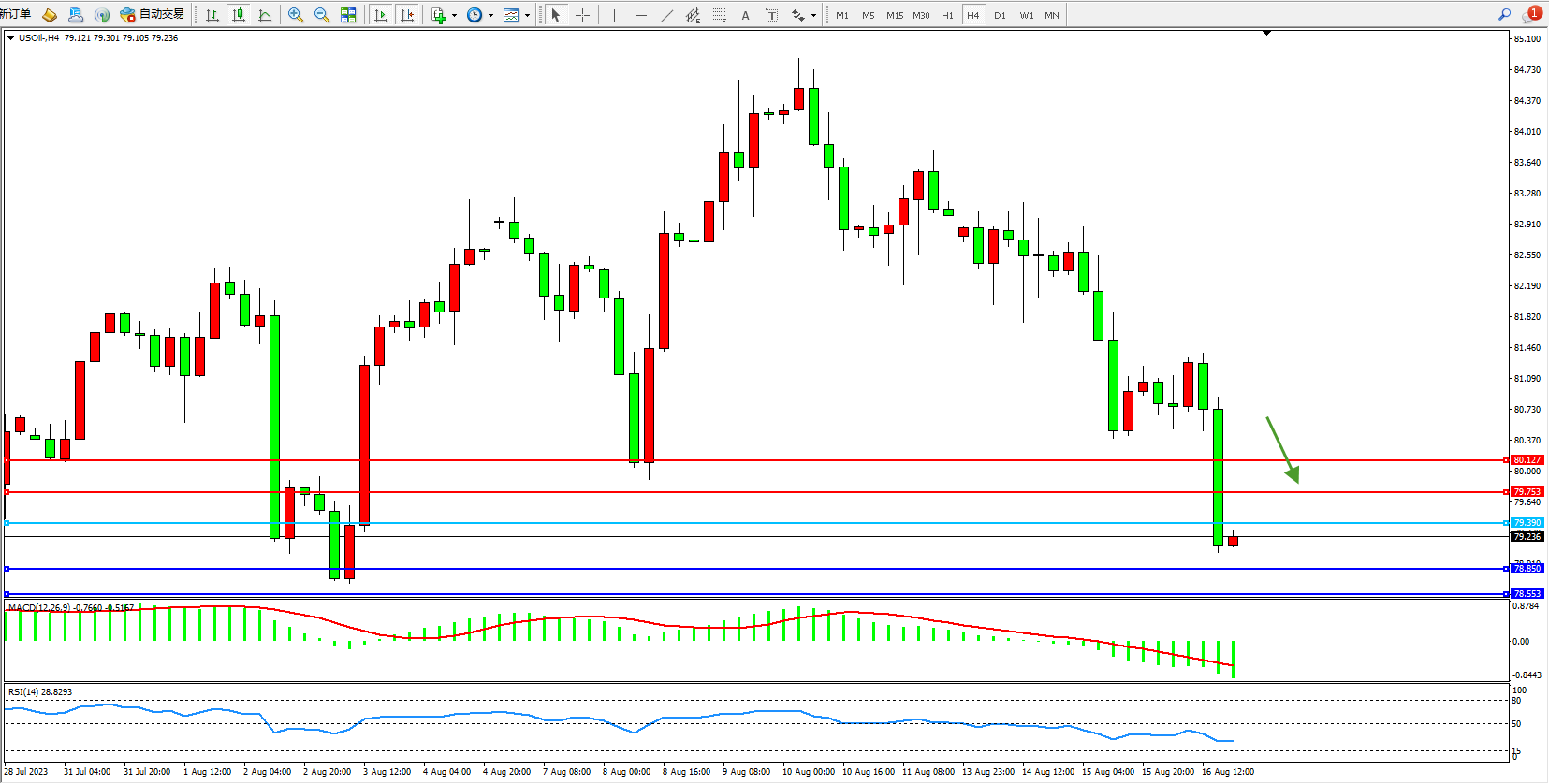原油维持79.236附近震荡,美国至8月11日当周EIA原油库存 -596万桶,预期-232万桶,前值585.1万桶。美国至8月11日当周EIA战略石油储备库存 60万桶,前值99.5万桶。
