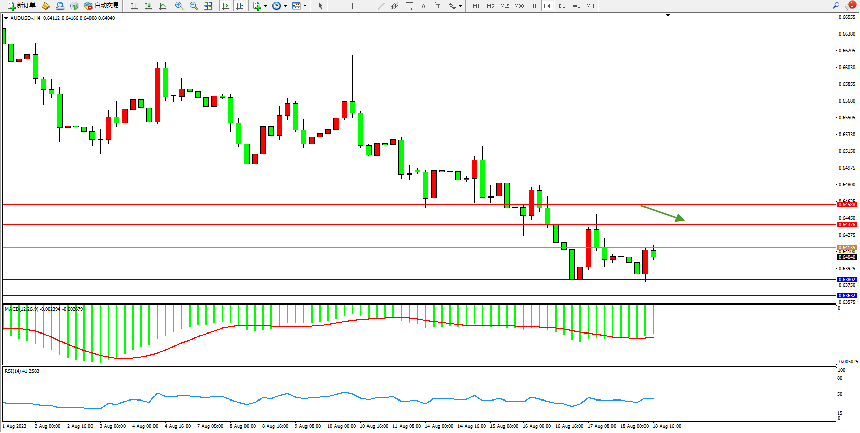 交易策略:0.64135下方看跌,目标0.63802 0.63632