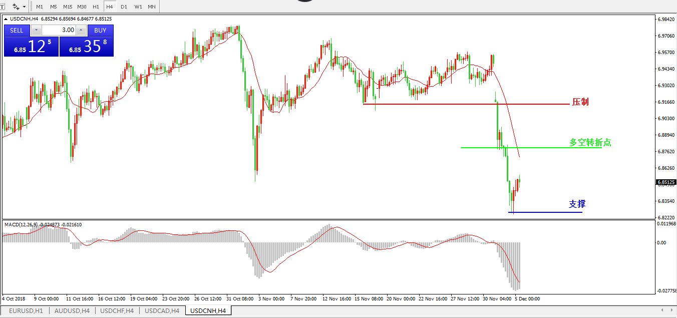 美元兑人民币USDCNH4小时图: