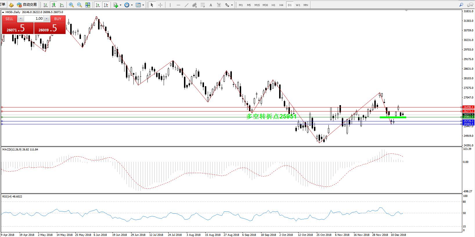 交易策略:25951上方看涨,目标26273、26498