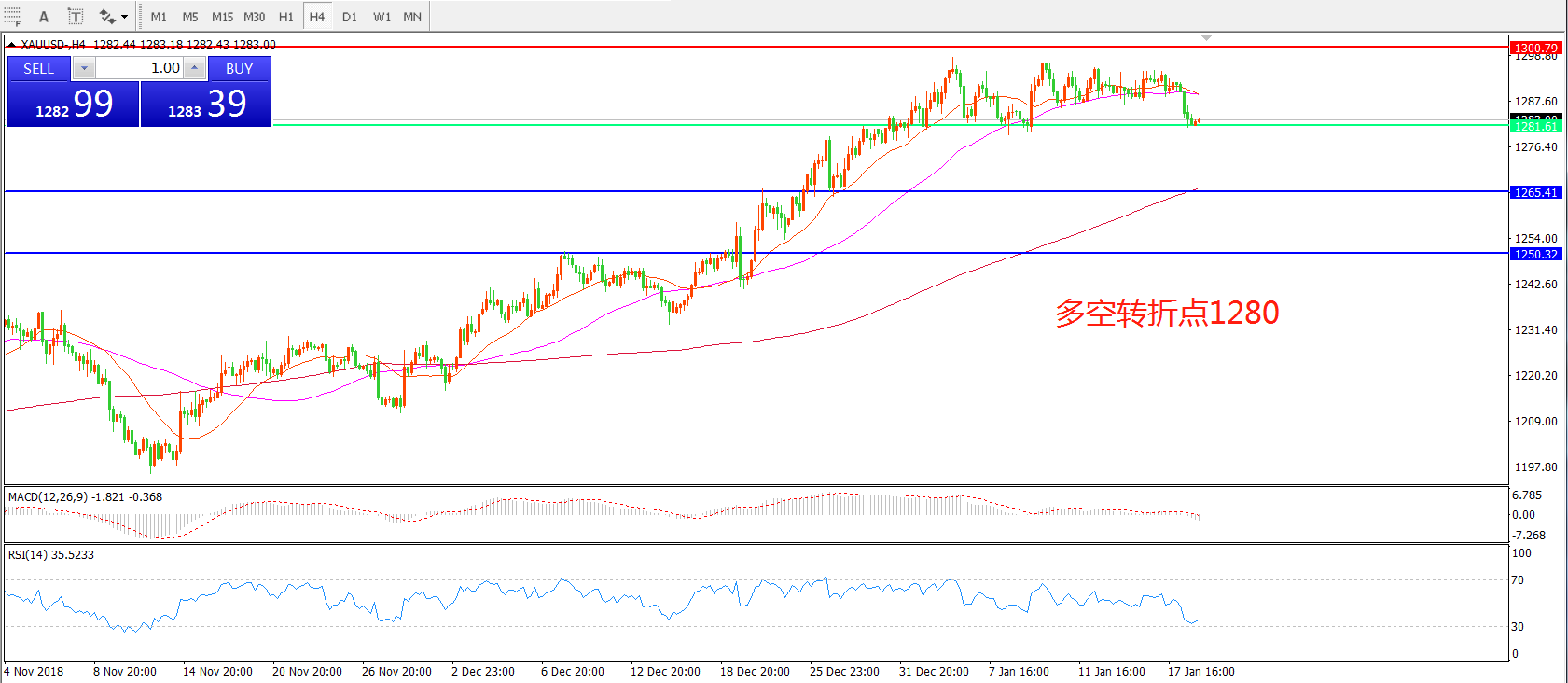 多空转折点:1280.00