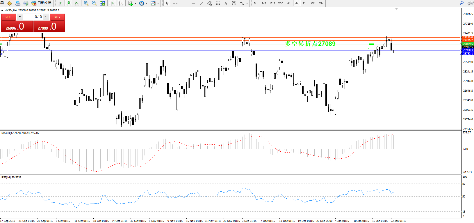 亚洲股市全线下跌,香港恒生指数早盘震荡走低,午后维持低位盘整,截至收盘跌0.7%,收于27005.45点。国际货币基金组织将全球经济增长预测下调至3年最低水平。