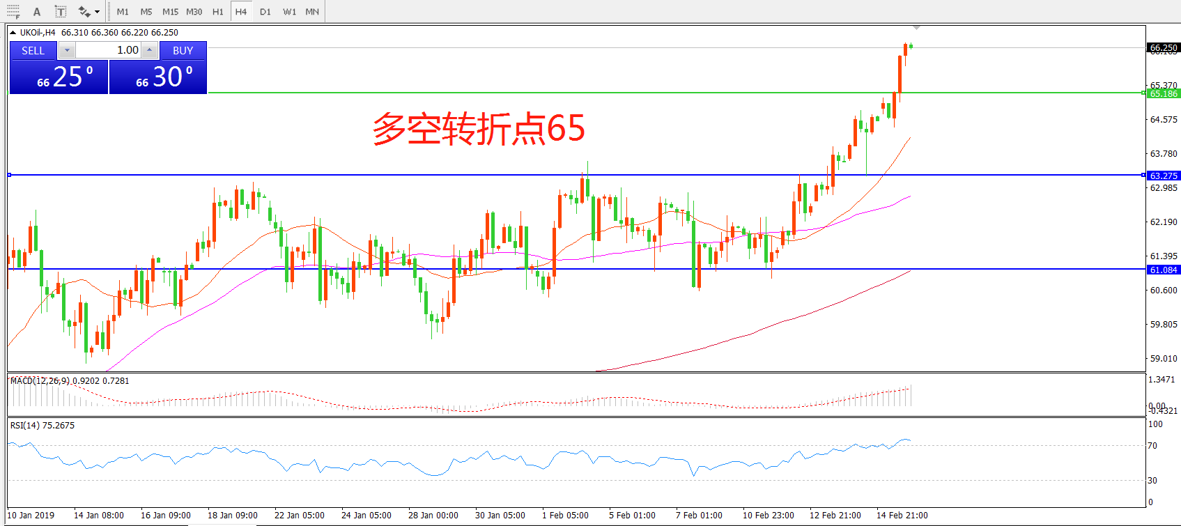 多空转折点:65.00
