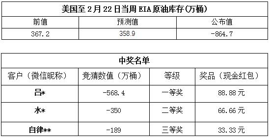 2019年2月第4期“EIA大竞猜”活动的中奖结果已出,获奖信息如下: