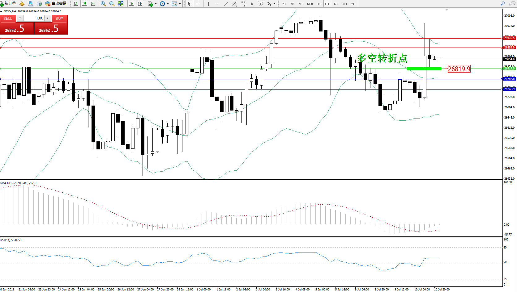 道琼斯指数710日(周三)收盘上涨76.70点,涨幅0.29%,报26860.20点。美联储公布的6月会议纪要显示,美联储官员认为放松货币政策的理由越来越充分。虽然整体金融状况仍对经济增长构成支撑,但这种状况看上去有个重要前提,就是预期美联储将在近期内放松政策以帮助抵消全球前景不确定性和其他下行风险对经济增长的拖累。