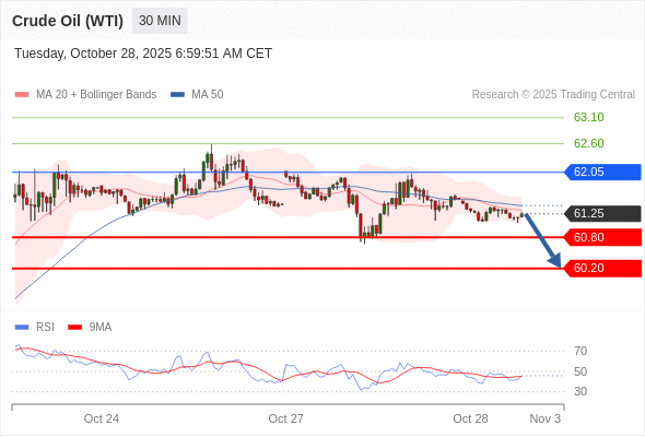 在 62.05 之下,看跌,目标价位为 60.80 ,然后为 60.20 。