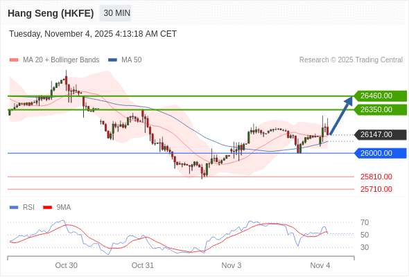 在 26000.00 之上,看涨,目标价位为 26350.00 ,然后为 26460.00 。