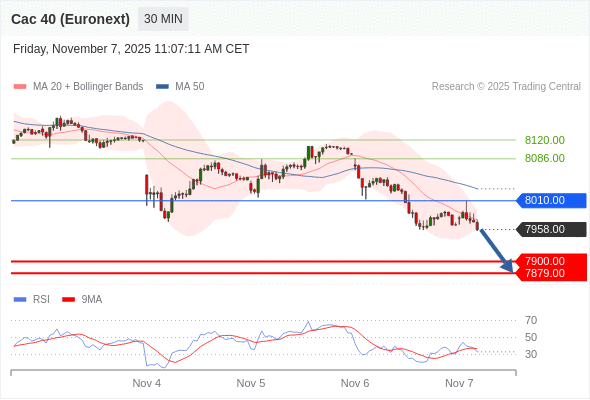 在 8010.00 之下,看跌,目标价位为 7900.00 ,然后为 7879.00 。