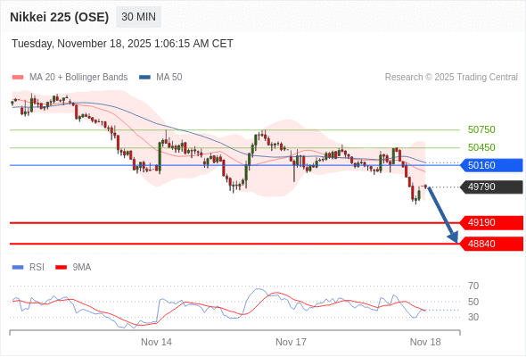 日经225股指期货 (OSE) 当日内: 朝49190运行。
