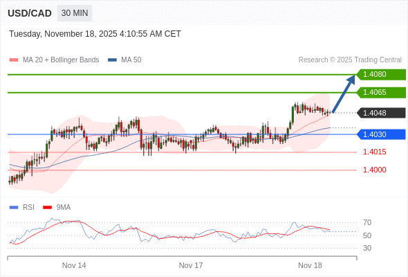 在 1.4030 之上,看涨,目标价位为 1.4065 ,然后为 1.4080 。