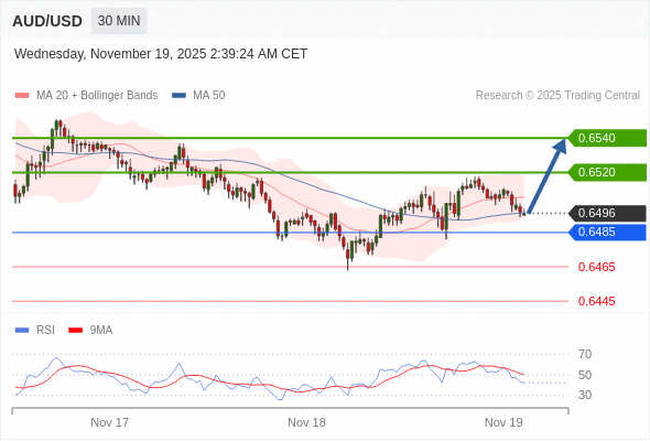 在 0.6485 之上,看涨,目标价位为 0.6520 ,然后为 0.6540 。