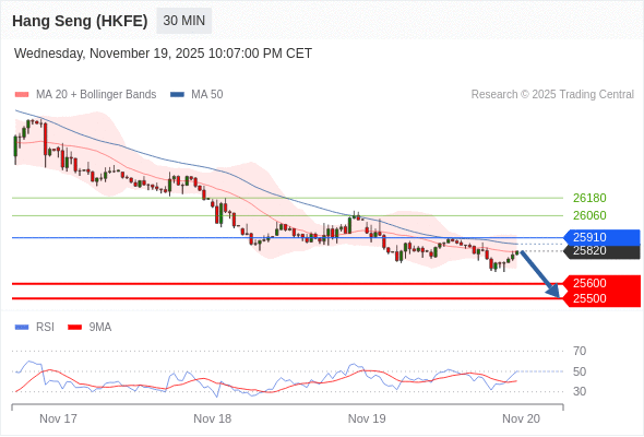 在 25910 之下,看跌,目标价位为 25600 ,然后为 25500 。