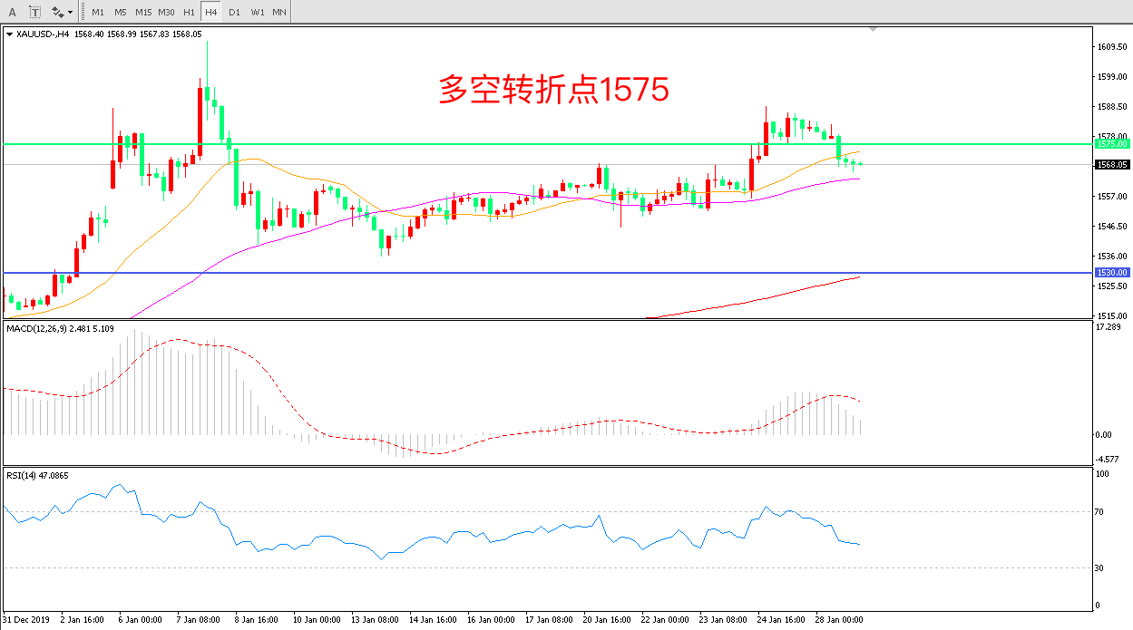 备选策略:在1575.00之下看跌,目标1530.00 1500.00
