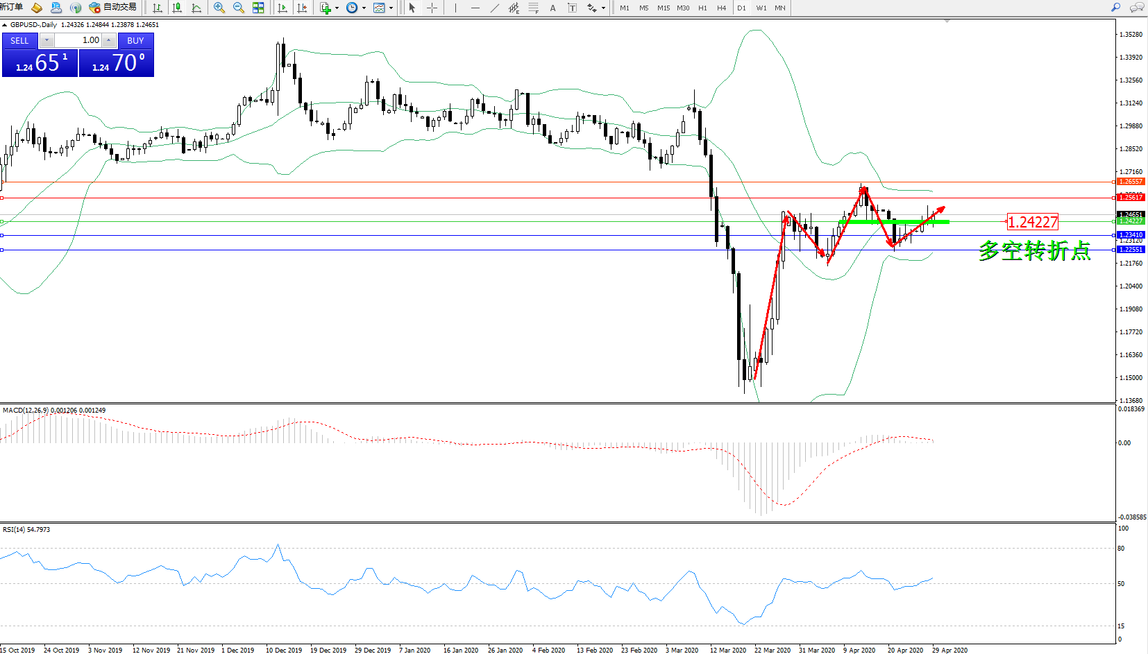 交易策略:1.24227上方看涨,目标1.256171.26557