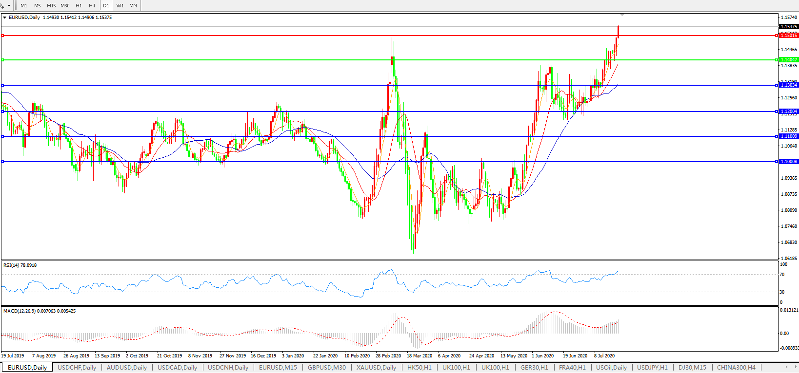 欧元兑美元EURUSD   日线图: