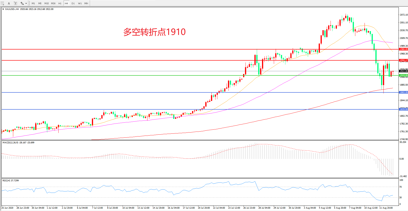 备选策略: 在1910.00之下看跌,目标1865.00 1820.00