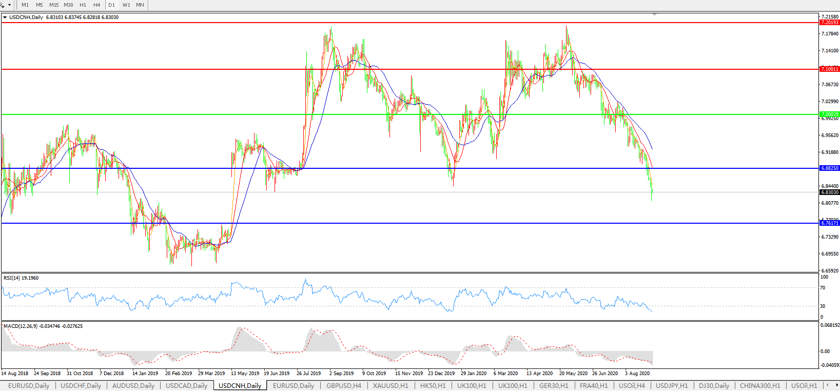 美元兑人民币USDCNH    日线图: