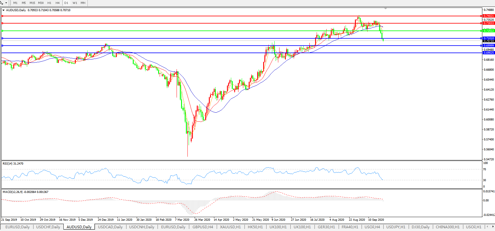 交易策略:0.7200下方看跌,目标0.7100、0.7000