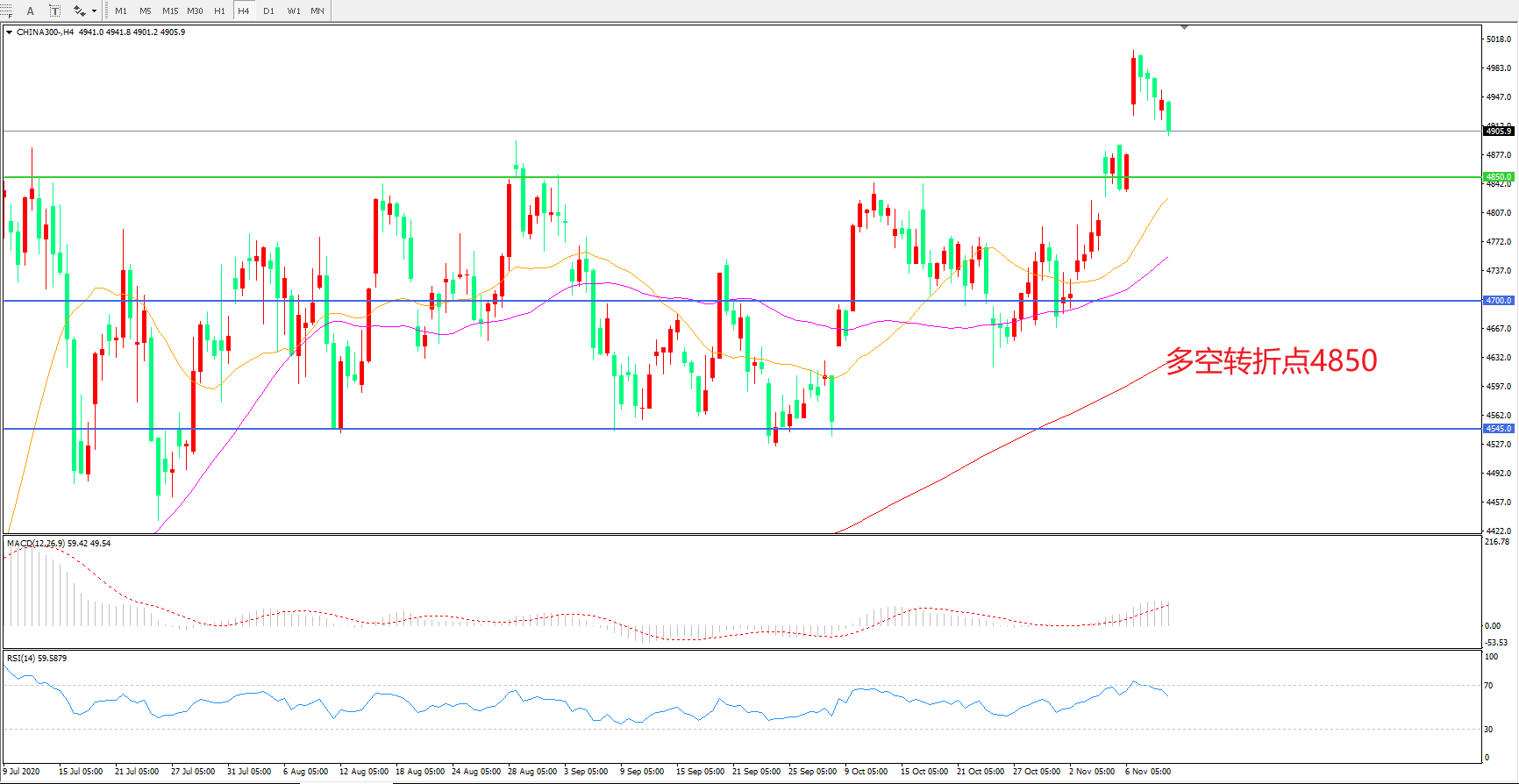 交易策略:在4850.00之上看涨,目标5000.00 5150.00