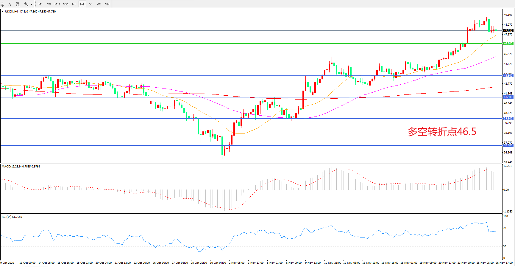 交易策略:  在46.50之上看涨,目标50.00      53.00