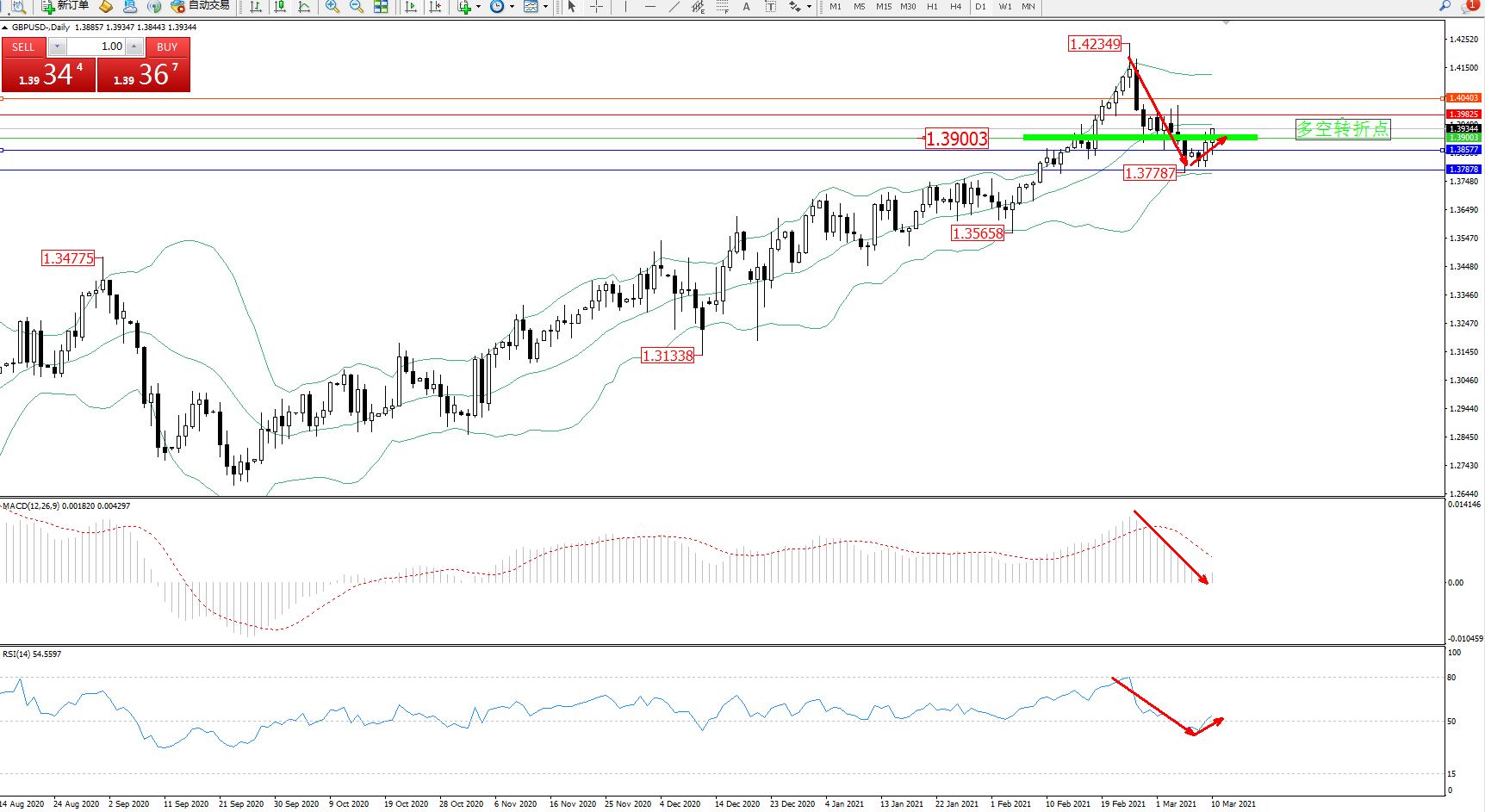 交易策略:1.39003上方看涨,目标1.39825、1.40403