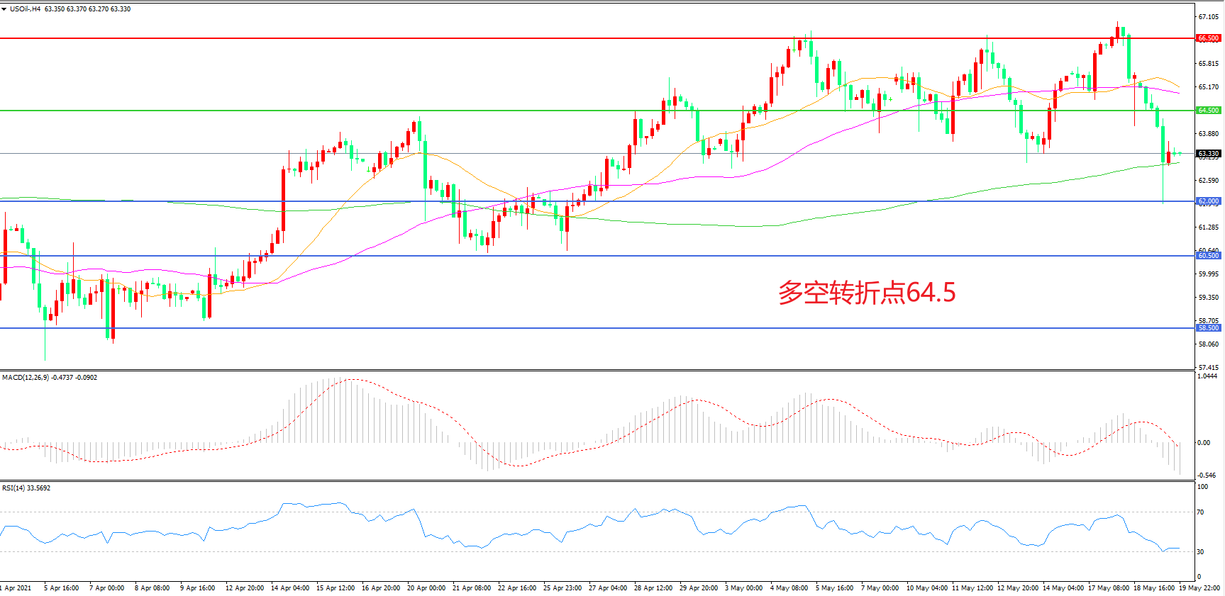 交易策略:在64.50之下看跌,目标62.00    60.50