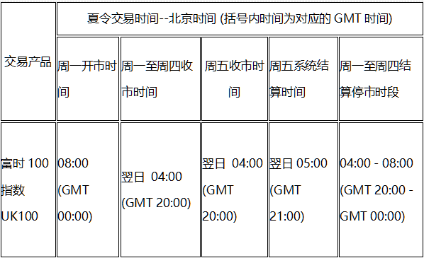 2022年3月14日(周一)起以下产品的交易将转为夏令时间