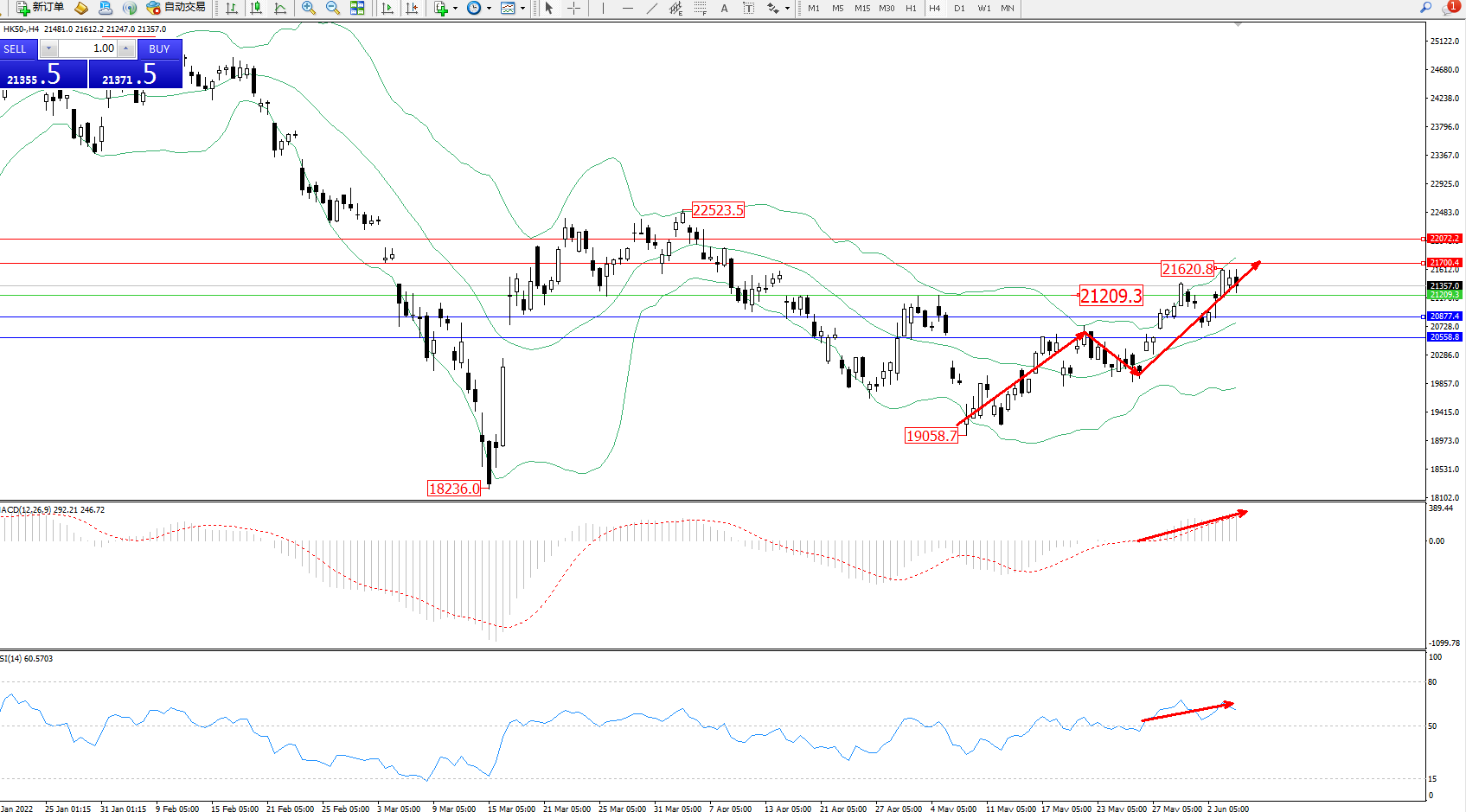 技术点评:多头动力延续布林带指标通道中上轨区间持续震荡上扬,高位抵达21620附近节点后整理,短期多头动力有继续向上移动态势,布林带指标呈上行趋势走势持续中,且处于缓慢张口走势,MACD指标处于多头区域维持缓慢上移,RSI指标处于多头区域维持窄幅整理;