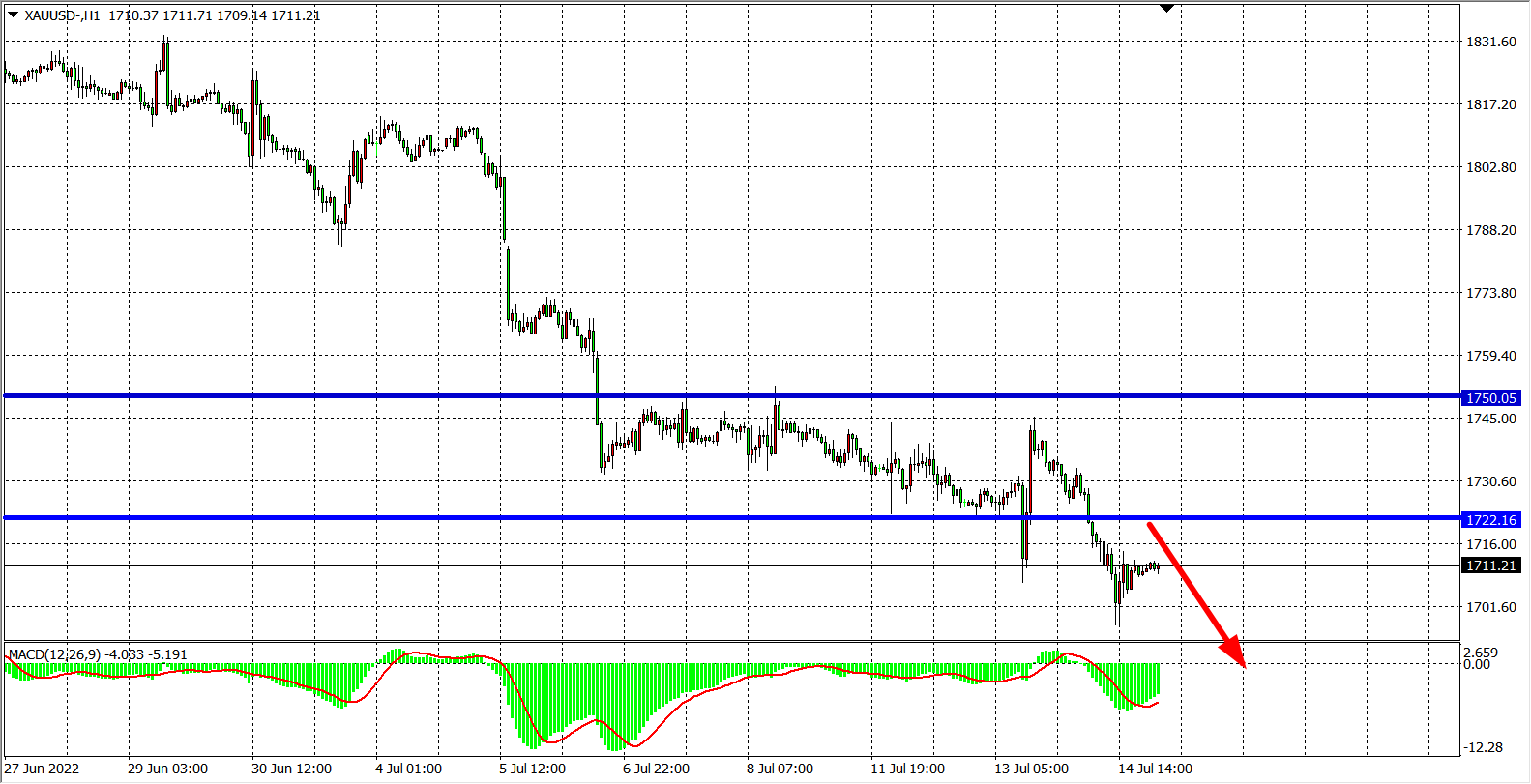 交易策略:在1722.00之下看跌,目标1690.00 1670.00