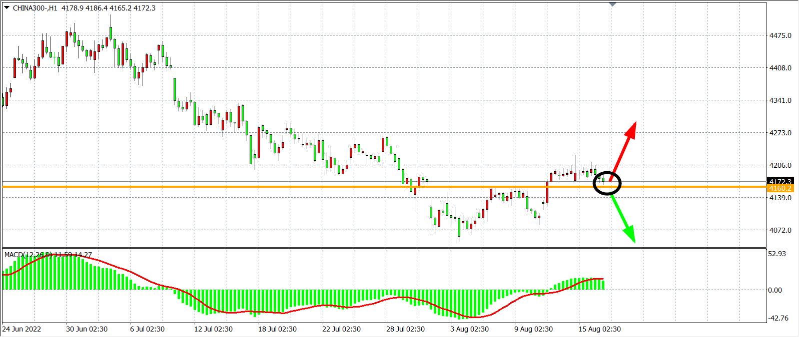 1小时图看,沪深300小幅回落但仍未下破4160之,同时MACD于零轴之上量能开始缩短,显示短期行情进入震荡,支撑4160目前依旧有效,在该位之上看反弹4250-4300