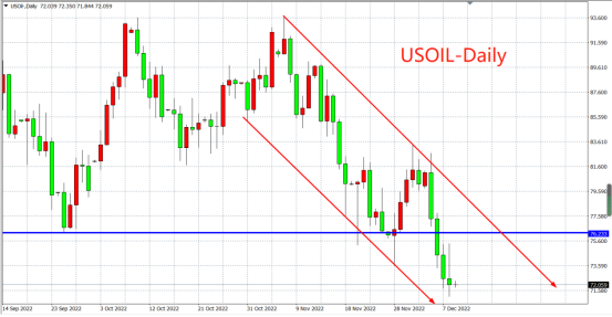 此外,G7对俄石油限价致使土耳其博斯普鲁斯海峡附近的油轮堵塞,约1800万桶石油受阻,石油供应端短缺引发WTI原油盘中一度大幅反弹逾4%至日内高位75.44美元。不过,在空头完全占据主动情况下,油价最终回吐日内全部涨幅,收跌0.84%,续创年内新低71.12美元,距离70.0美元关口仅一步之遥。