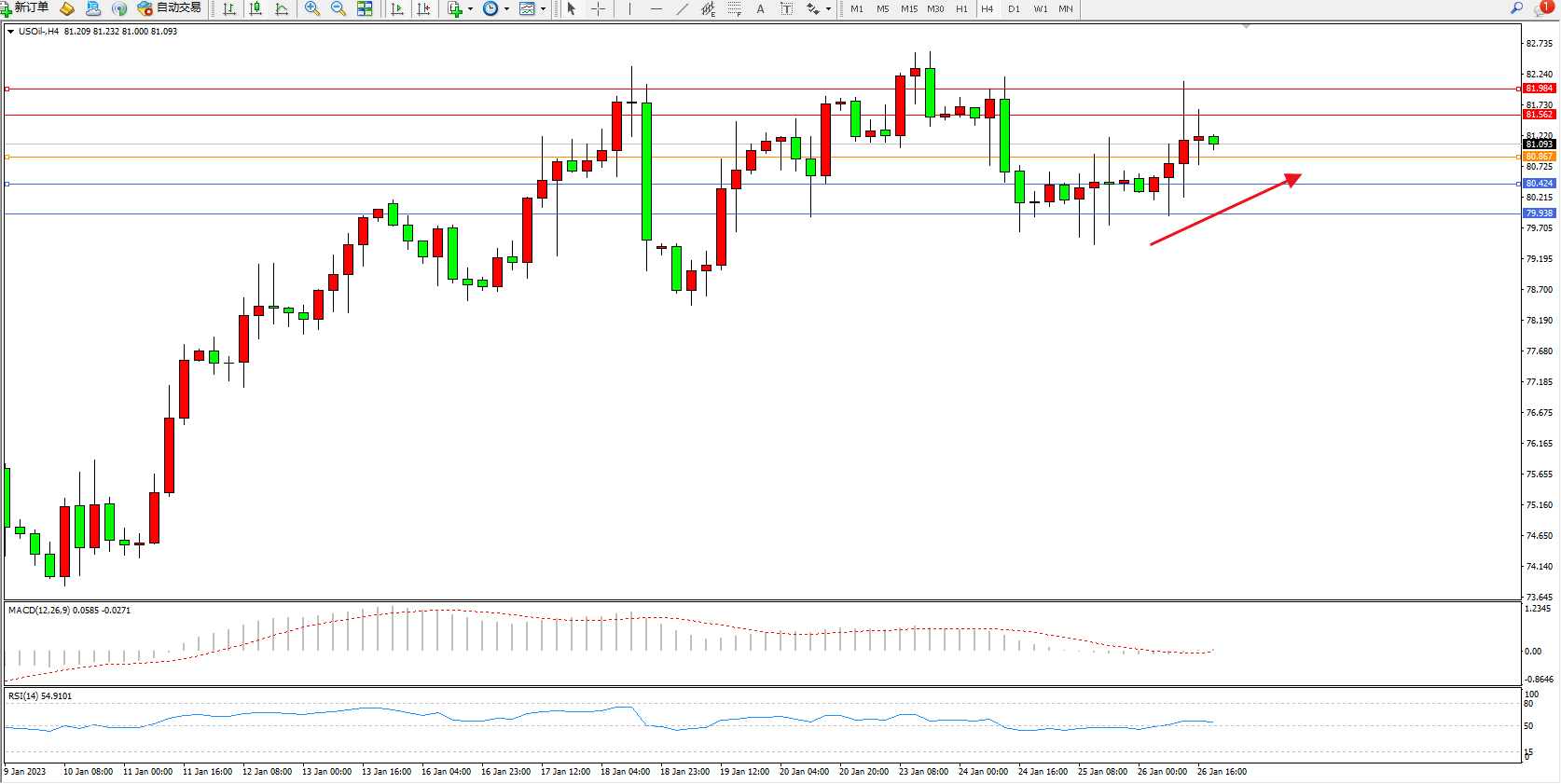 4小时图看:高位震荡缓慢上行,市场看涨情绪再度涌现,短期多头动力不断向上移动中,MACD指标处于0轴线附近弱势整理,RSI指标处于50均衡线上侧弱势徘徊;