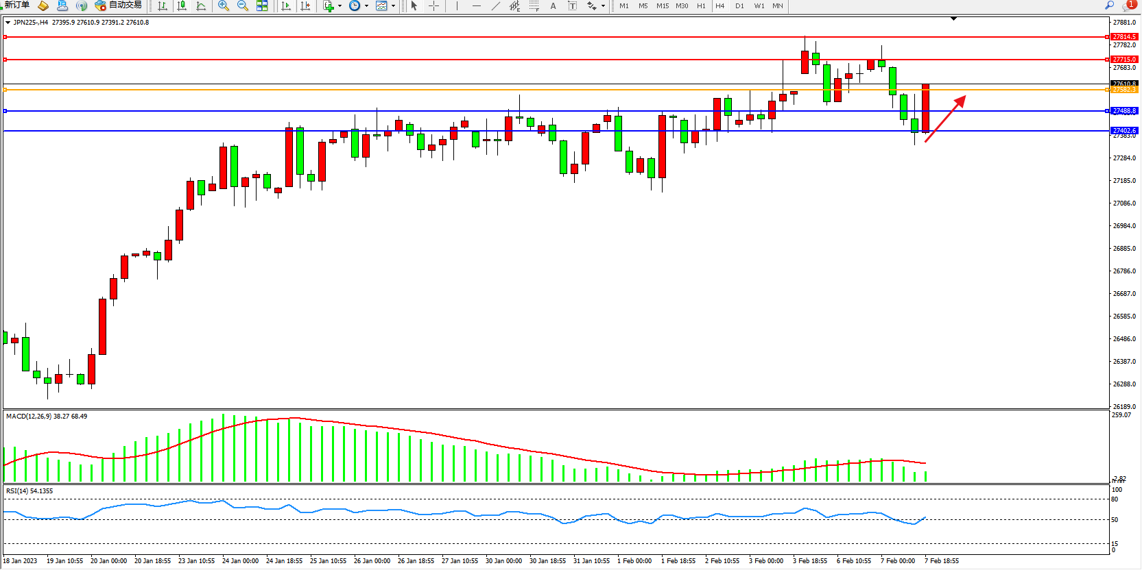 4小时图看:高位窄幅震荡,市场多头动力强势拉升,短期看涨情绪依旧,MACD指标处于多头区域维持整理,RSI指标处于50均衡线附近弱势徘徊;