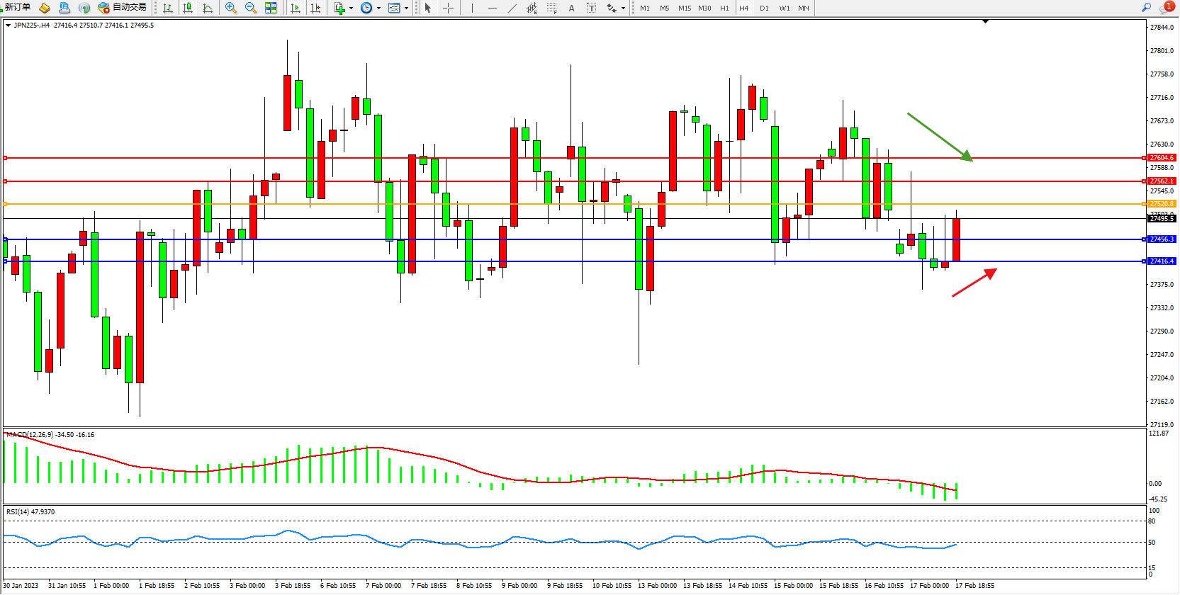 日经225指数2月17日(周五)收盘下跌204.44点,跌幅0.74%,报27492.00点。日本财务大臣铃木俊一:提名日本央行候选人时考虑到了结构性工资上涨和可持续、稳定地实现通胀目标两个因素。政府认为植田和男是日本央行行长的最佳人选。
