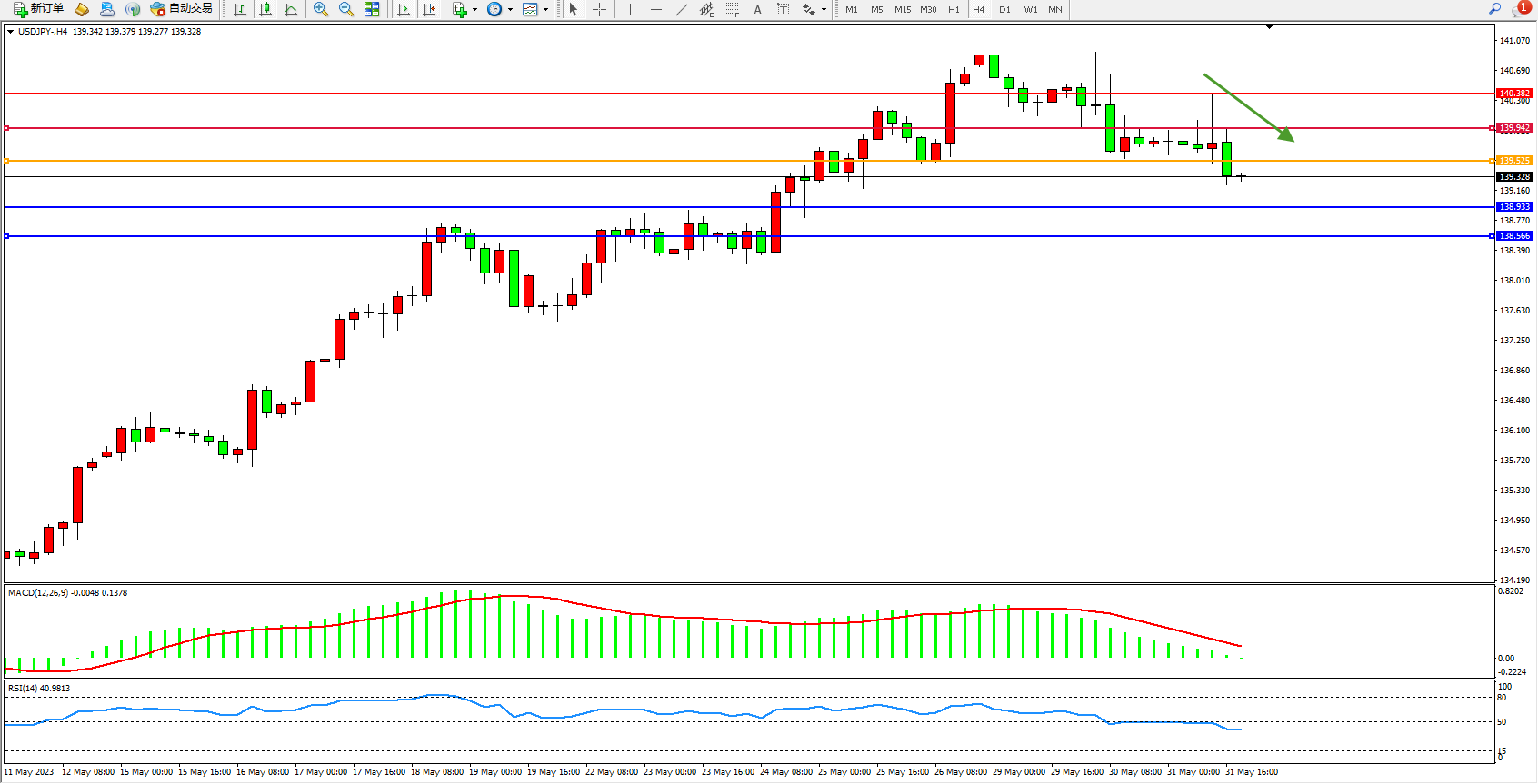 交易策略:139.525下方看跌,目标138.933  138.566