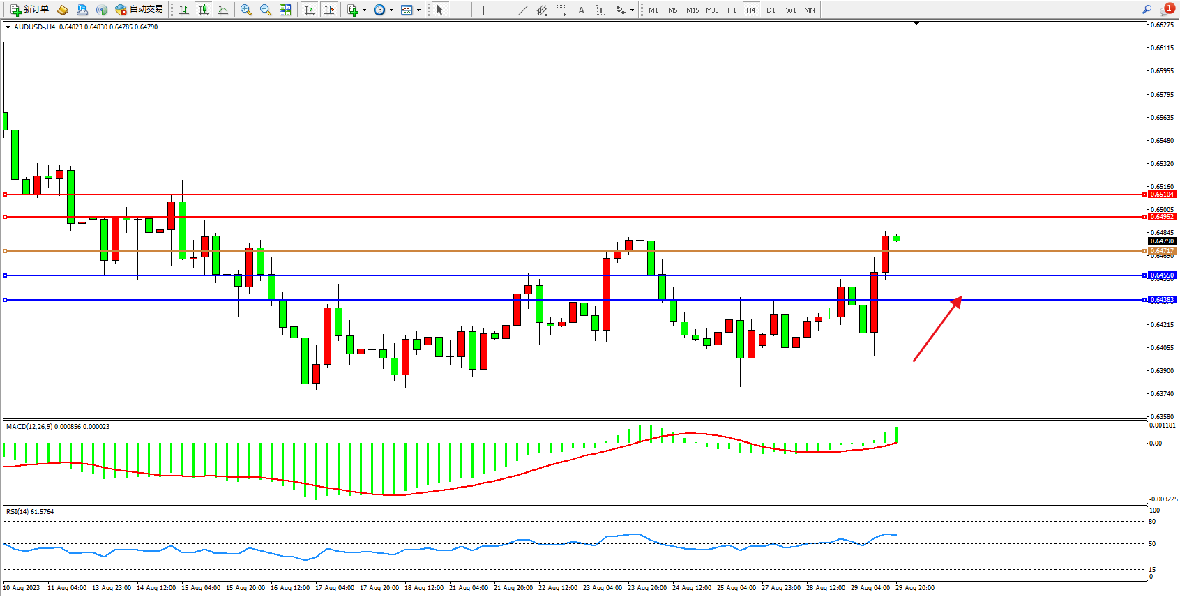 交易策略:0.64717上方看涨,目标0.64952 0.65104