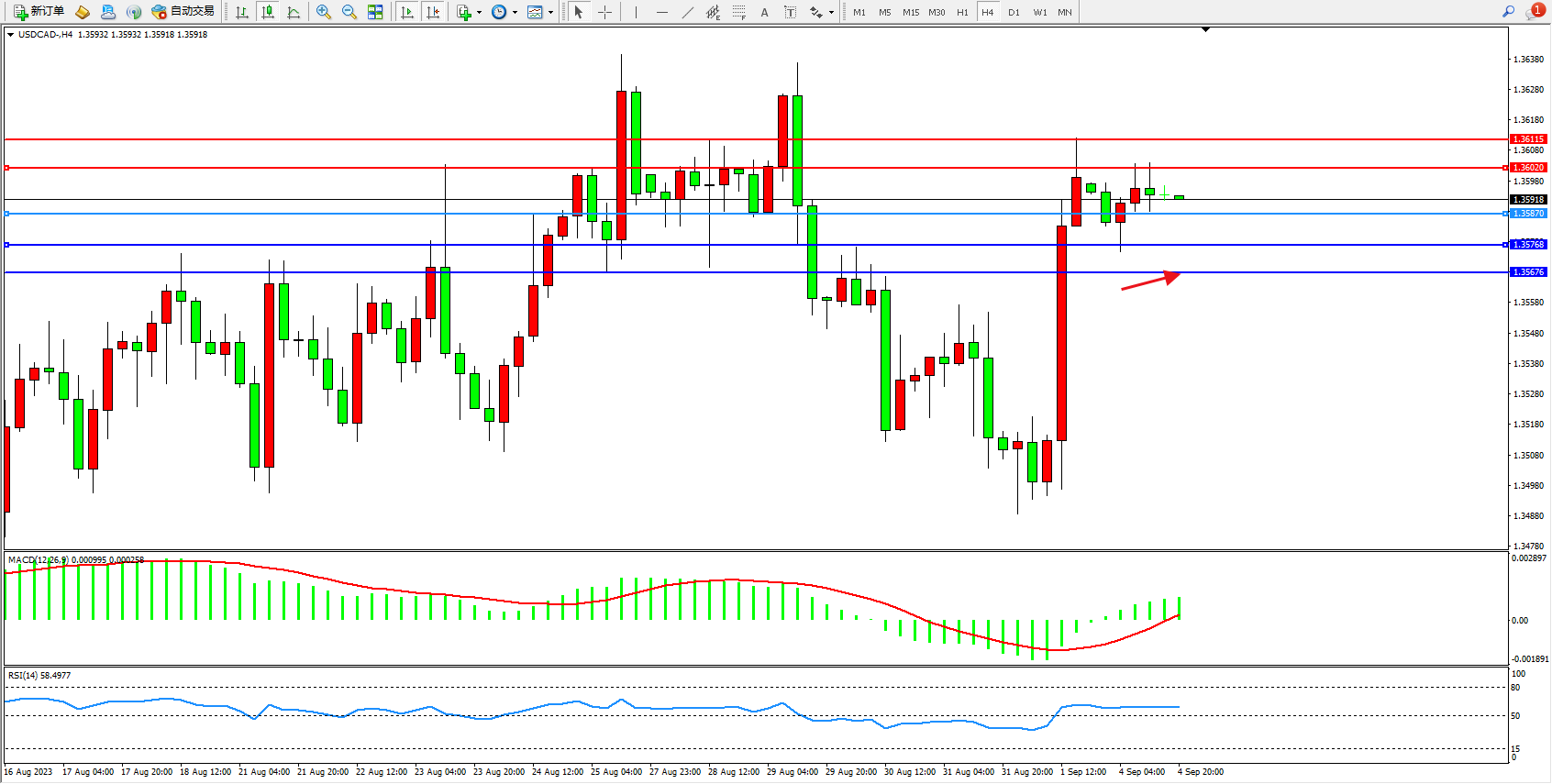 备选策略:1.35870下方看跌,目标1.35768  1.35676